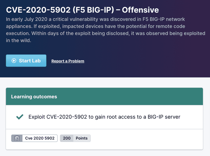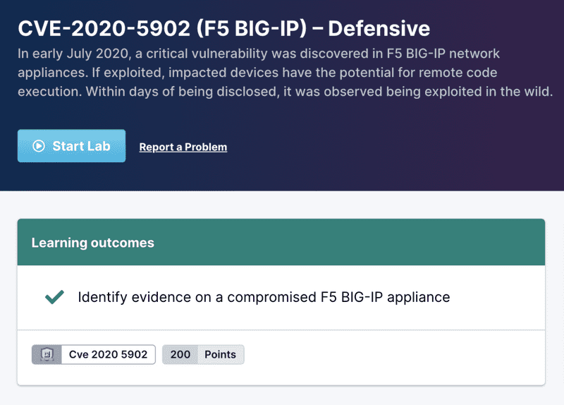 On 3rd July 2020, Twitter was abuzz with news of a high profile vulnerability. F5 had released an advisory about a vulnerability in their platform with a perfect 10 CVSS score – the worst a vulnerability can get. Immersive Labs doesn't run any F5 appliances, but being quick off the mark with content on new and hard-hitting CVEs is a core part of our service, so it was time to create offensive and defensive labs on these vulnerabilities.