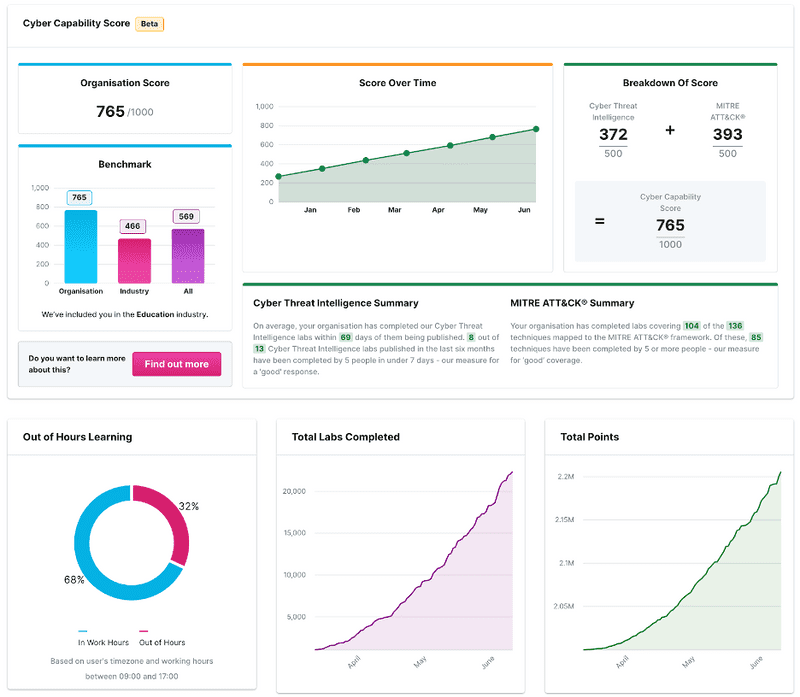 Immersive Labs is exercise-driven and evidences cyber capability in two ways: tracking and scoring. The tracking element allows you to monitor human coverage to mitigate threats in real time. The scoring element enables you to measure human preparedness including in wider risk management efforts.