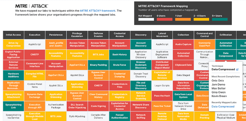 Immersive Labs' MITRE ATT&CK framework mapping tool