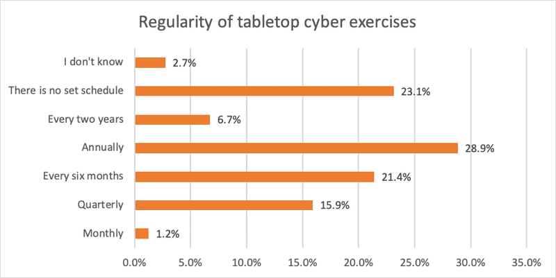 To compound this, most people run just three scenarios per exercise and, at the time of questioning, only a quarter (25%) had run an exercise in the last three months. Of those who had run exercises, only 26% said their team exceeded expectations.